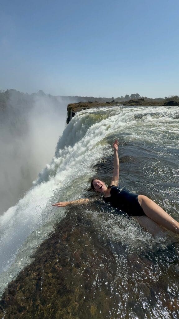 Victoria Falls is iconic and is often on everyone’s list of must-sees, but for me, the real magic was walking to Devil’s Pool, right at the edge of the waterfall on the Zambian side. I didn’t originally plan to, but I sat at the edge of the falls. With the water rushing around me and the world literally falling away, it felt half-terrifying, half-alive – such a reminder to let your travels take you toward the unexpected.